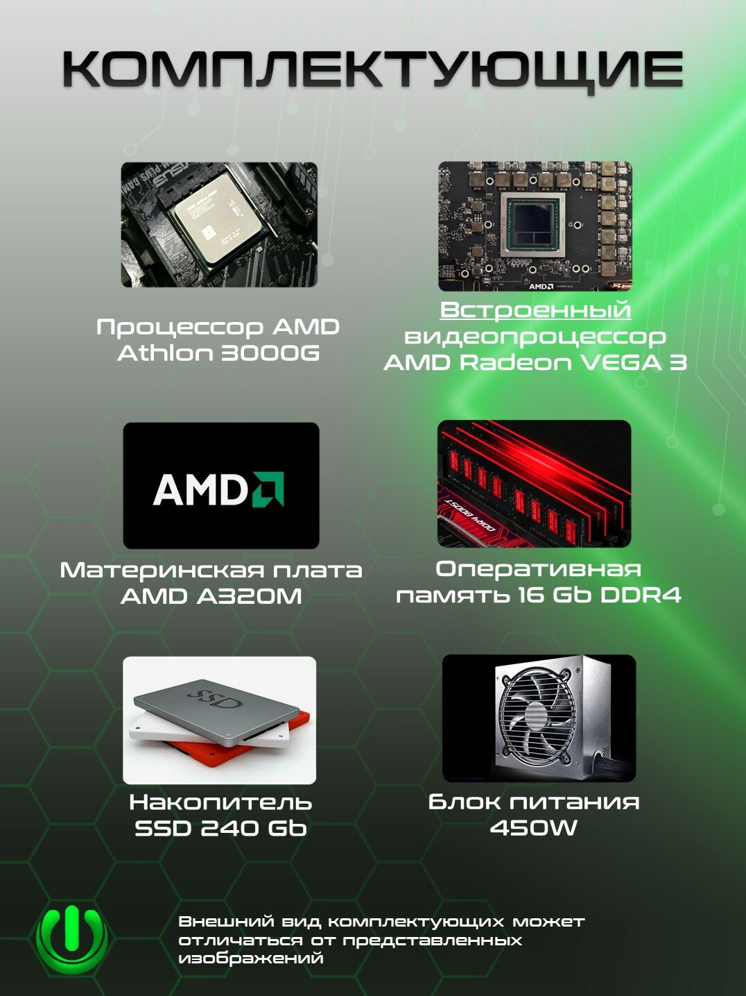 Игровой компьютер PREON Omega (AMD Athlon 3000G/MB AMD A320M/RAM 16Gb DDR4/SSD 240Gb SATA 2,5"/AMD Radeon VEGA 3/БП 450W/Windows 10 PRO TRIAL) 26 897 ₽ Подробнее