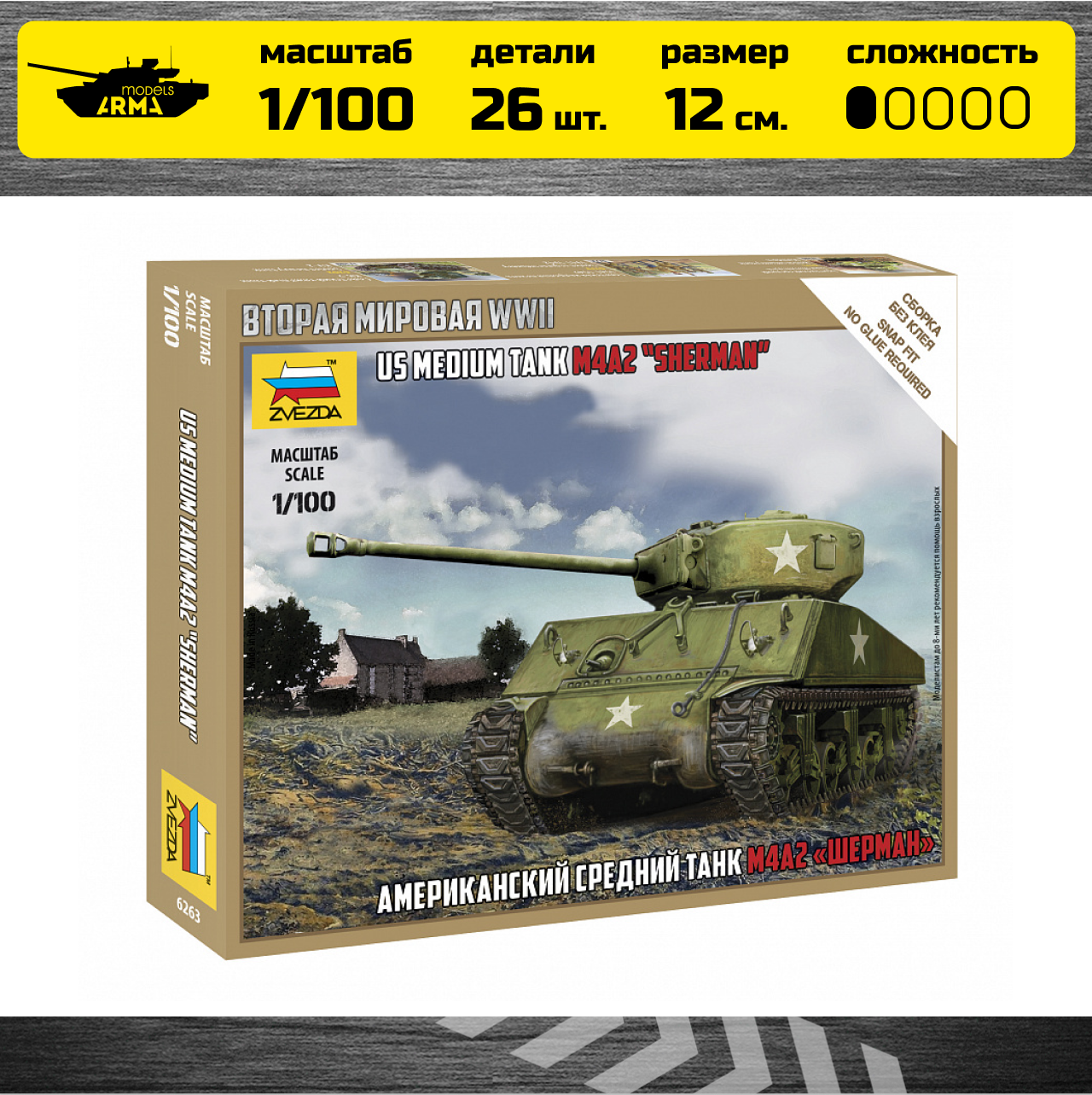 Сборная модель Звезда Американский средний танк М4А2 Шерман, 1/100 6263