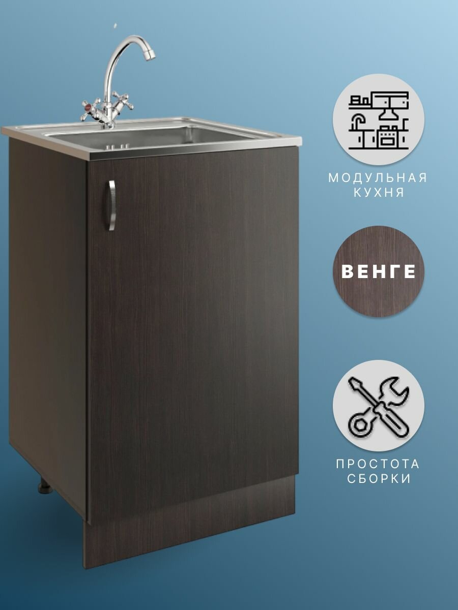 Кухонный гарнитур, Модуль напольный, тумба под мойку для кухни, 50х43,6х82, венге 4 660 ₽ Подробнее