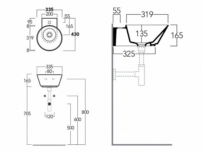 Раковина накладная/ подвесная 34 см Simas Wave WA 05