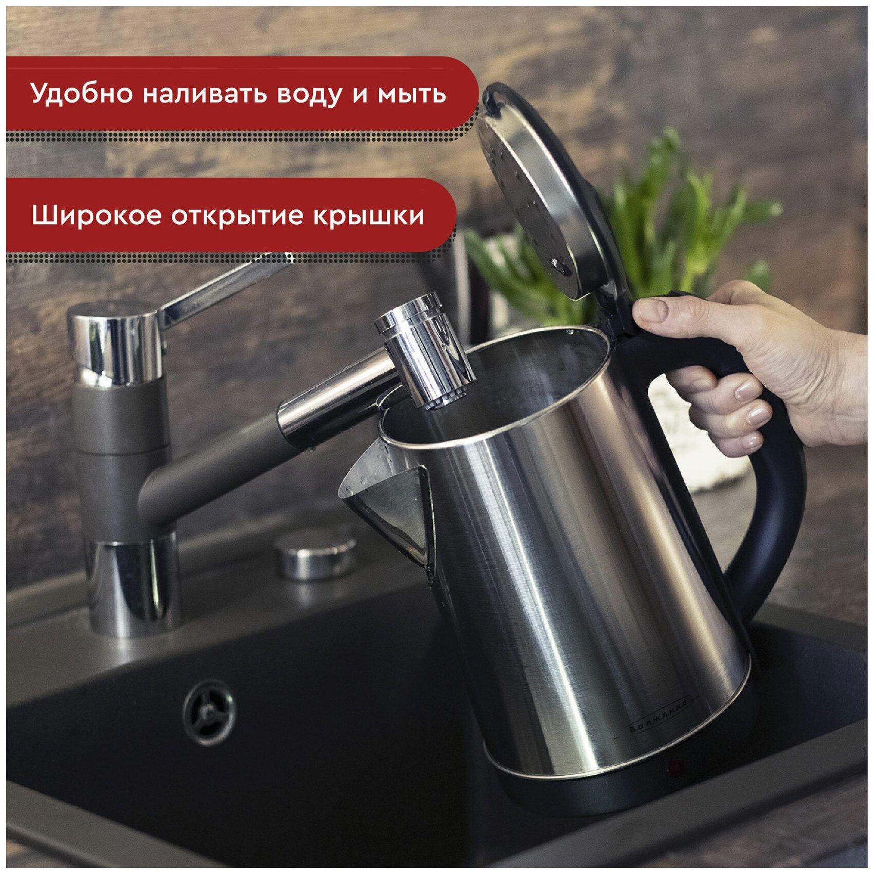 Лучшие цены. Общая информация Модель товараИнформацияОтключение при снятии с подставки Защита от включения без водыОписание ОсновныеТипэлектрический чайникМатериал корпусаметалл, пластикМатериал колбынержавеющая стальДорожный чайникНетЗаваривание чаяНетЗаваривание кофеНетМощность1500 ВтОбъем1.8 лЦвет корпусанержавеющая сталь КонструкцияПодставкас возможностью вращенияВнешний уровень водыНетПодсветка водыНетНагревательный элементзакрытый Размеры и весДлина203 ммШирина165 ммВысота230 ммВес1100 г Функциональные. Магазины в вашем городе.