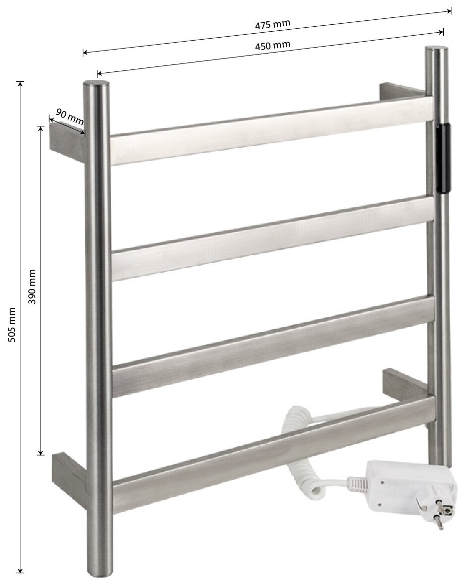 Полотенцесушители Полотенцесушитель электрический, хром, матовый, лесенка, 475 х 505 х 90 мм, на 4 перекладины, 75 W, 220V / 50 Hz, из нержавеющей стали, с таймером до 8 часов