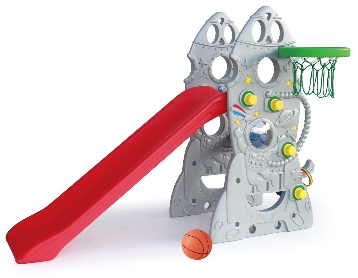 Горка Горка "Ракета + баскетбольное кольцо" SL-18(серо-красно-зеленая)