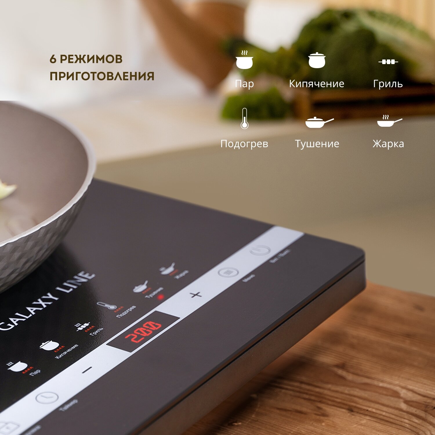 Лучшие цены. Плитка GALAXY LINE GL3030 обеспечивает высокоскоростной инфракрасный нагрев, благодаря которому пища готовится значительно быстрее, чем на обычной плитке, а также имеет превосходные вкусовые качества и сохраняет все полезные свойства. Для приготовления блюд на инфракрасной плитке можно использовать посуду, изготовленную из жаропрочного стекла, керамики, алюминия, нержавеющей стали или чугуна с плоским дном диаметром не более 20 см. Вытирайте насухо дно посуды перед ее установкой на плиту. Магазины в вашем городе.
