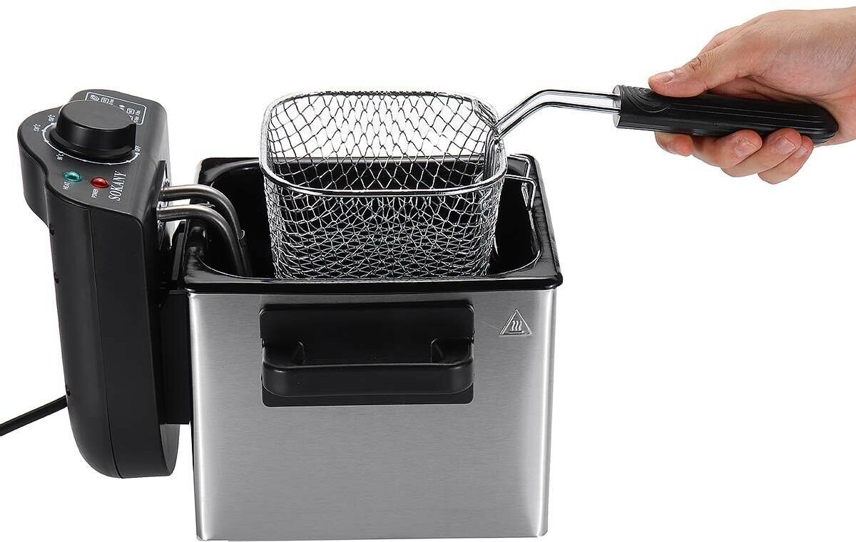 Лучшие цены. Во фритюрнице SOKАNY WJ-804 продукты жарятся в глубоком слое горячего масла. С помощью термостата вы можете плавно регулировать температуру приготовления. Продукты во фритюре готовятся быстрее, чем на сковороде из-за короткого воздействия высокой температуры со всех сторон. Несмотря на то, что продукты готовятся в масле, в жаренных во фритюре продуктах масла обычно содержится меньше, чем в жаренных на сковороде. Хорошо зажаренные во фритюре продукты покрыты хрустящей корочкой, под которой почти нет масла. Магазины в вашем городе.
