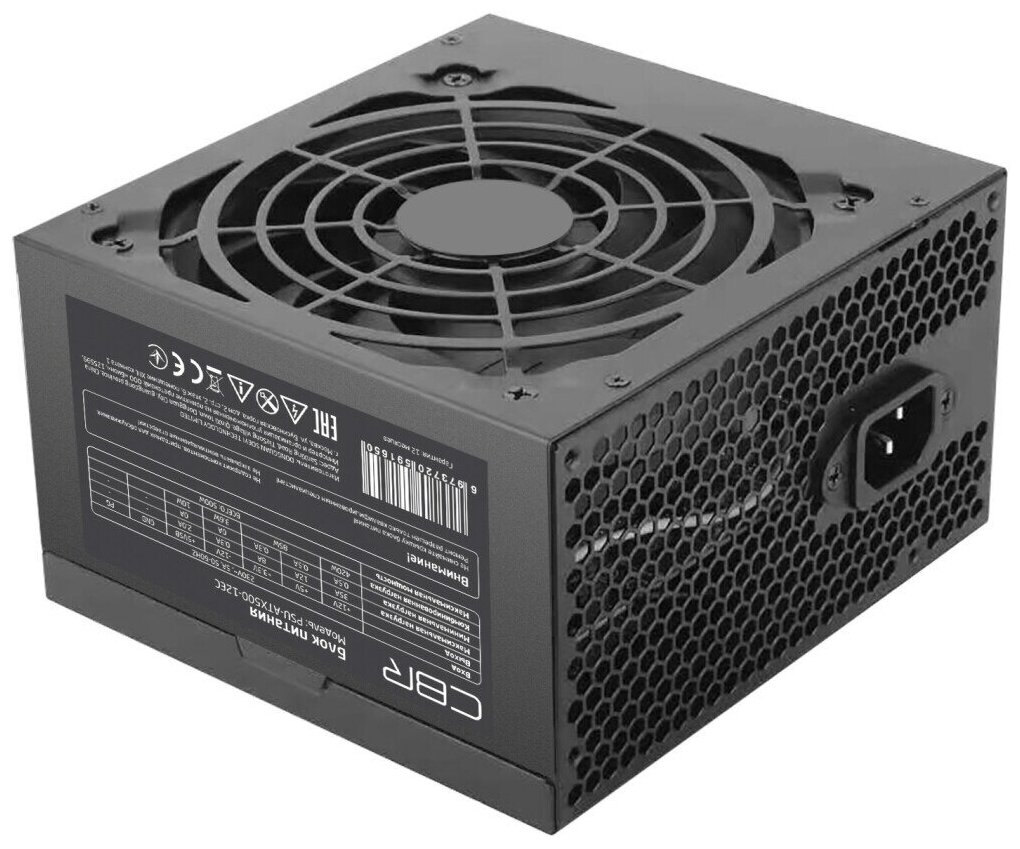 Блок питания CBR ATX 500W, 12cm fan, 20+4pin/1*4+4pin/1*6+2pin/2*IDE/4*SATA, кабель питания 1.2м, черный (PSU-ATX500-12EC)