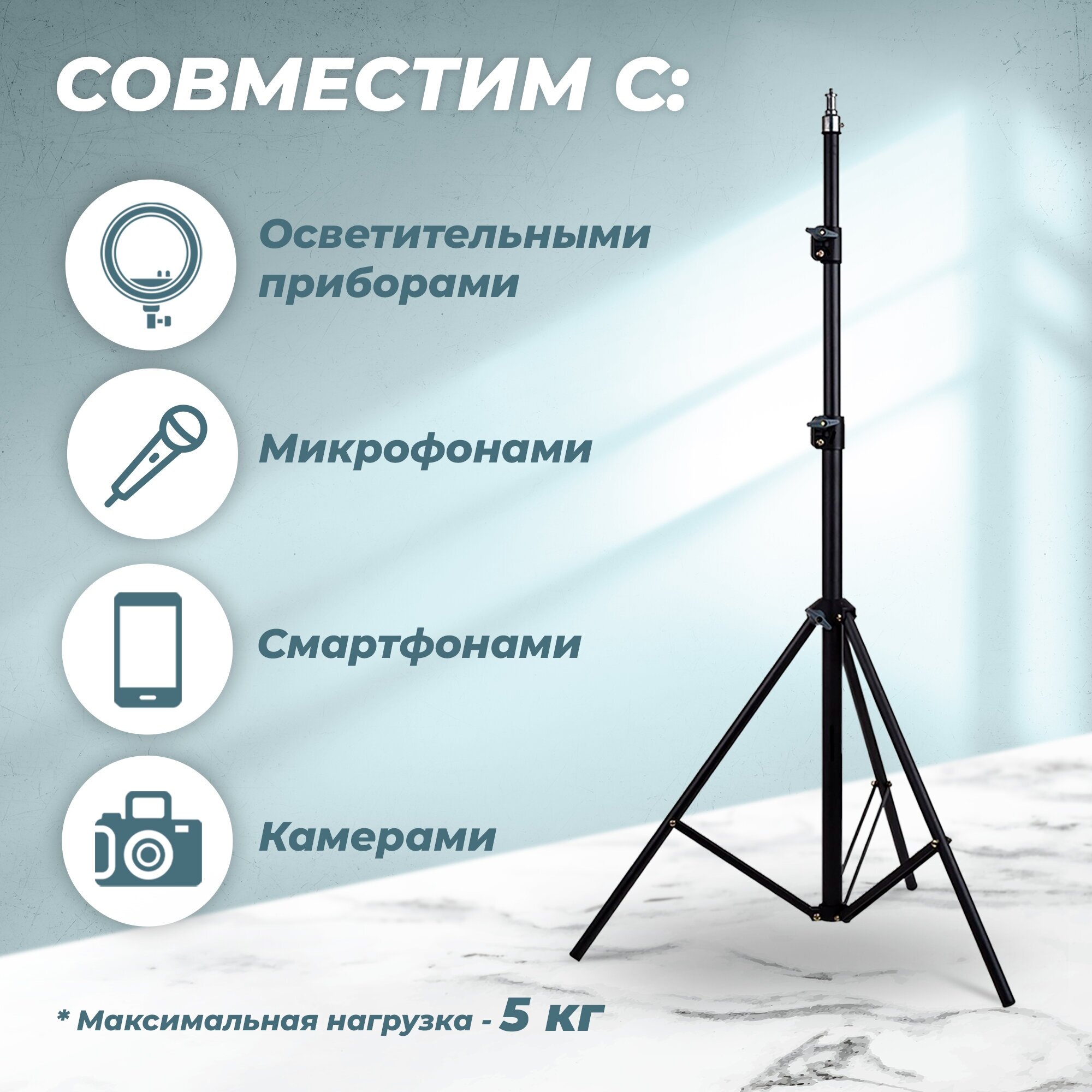 Лучшие цены. Штатив-тренога WALKER WLTR-21 - надежный помощник для любителей фотографии и видеосъемки. Благодаря своей прочности и устойчивости, он идеально подходит для использования с фотоаппаратами, смартфонами и кольцевыми лампами. WLTR-21 имеет трех-опорную систему, которая выдерживает нагрузку до 5 кг, обеспечивая устойчивость даже на неровных поверхностях и при сильном ветре. Максимальная высота съемки составляет 210 см - этого достаточно для создания четких кадров в любых условиях. Магазины в вашем городе.