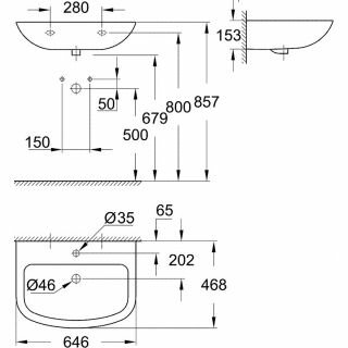 Раковина GROHE Bau Ceramic подвесная, ширина 65 см