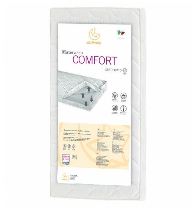 Лучшие цены. Наполнение терморегулирующих матрасов Comfort состоит из воздухопроницаемых волокон полиэстера, что позволяет всем изделиям быть очень легкими, равномерно наполненными и не деформирующимися. Чехол изготовлен из 100% хлопка. Матрасы обладают ортопедическими, гипоаллергенными и антибактериальными свойствами. Отличительные особенности матрасов Italbaby Comfort: 3 размера на выбор имеют идеальную жесткость и упругость длительное время сохраняют форму небольшой вес водоотталкивающие воздухопроницаемые обладают. Магазины в вашем городе.