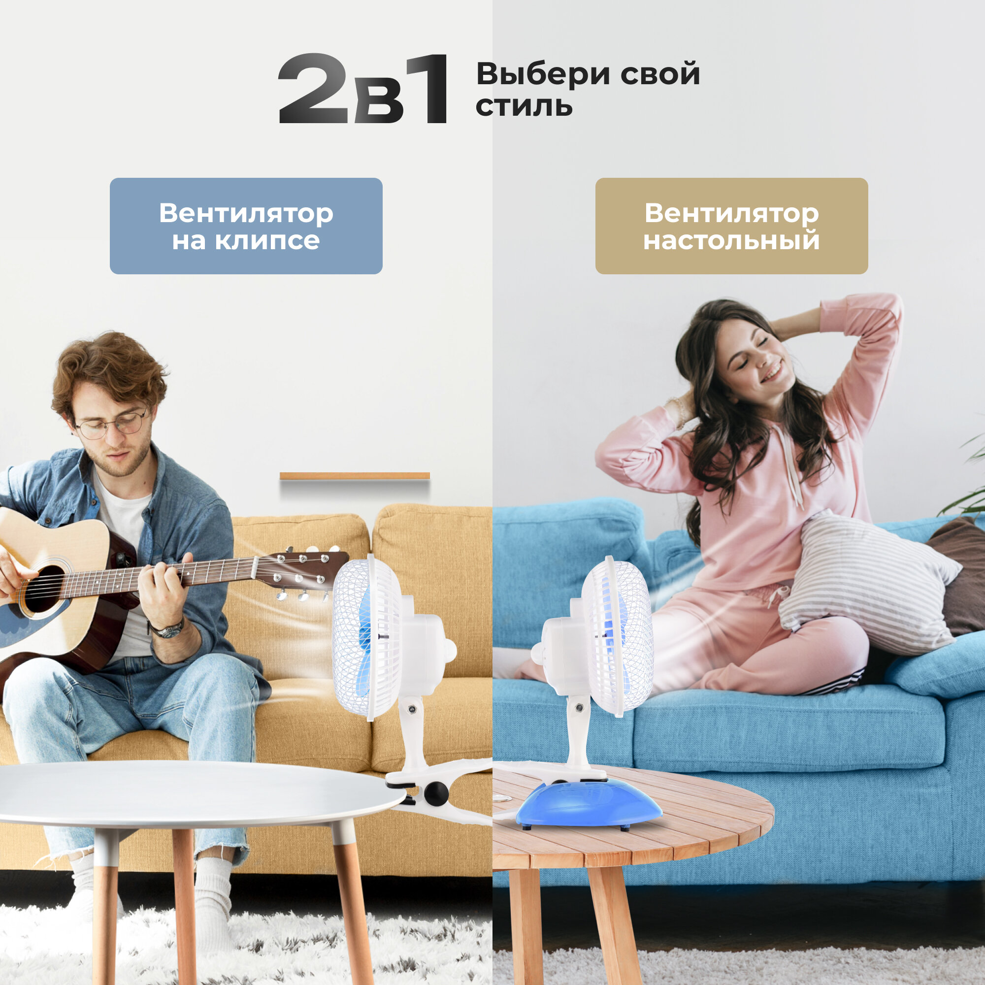 Вентилятор настольный Centek CT-5003 Белый, диаметр 19 см, металлическая решётка, клипса