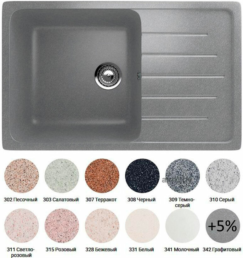 Кухонная мойка Ulgran U-400-310, серый 7 284 ₽ Подробнее