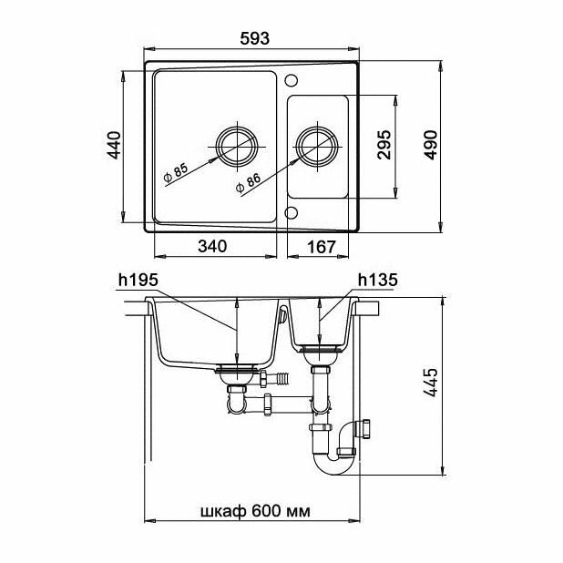 Мойка кухонная Ewigstein Gerd 60K 600*500 топаз 13 450 ₽ Подробнее