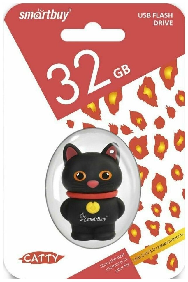 Лучшие цены. Память USB Flash Smartbuy Wild Series Черный кот – милый сувенир и в то же время очень полезная вещь. Выполненные из резины корпус и колпачок несут не только декоративную функцию, но и обеспечивают отличную защиту от ударов при падении, а также от влаги при намокании. Хотя производителем не заявлено о влагоустойчивости конструкции, корпус очень плотно прилегает к колпачку, предупреждая попадание воды внутрь, к электронным компонентам. Smartbuy Wild Series Черный кот способна проработать более 10 лет. Магазины в вашем городе.