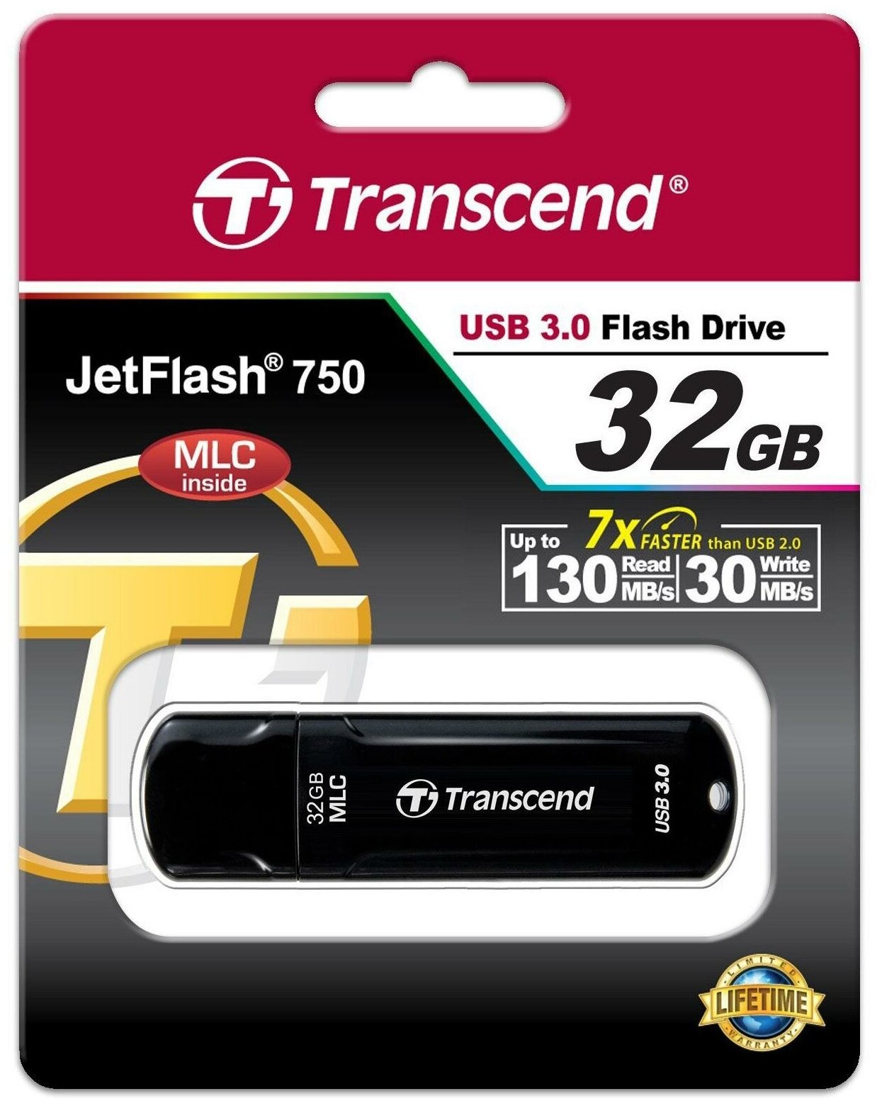 USB 3.0 Flash Drive 32GB Transcend JetFlash 750, MLC, черный (TS32GJF750K)