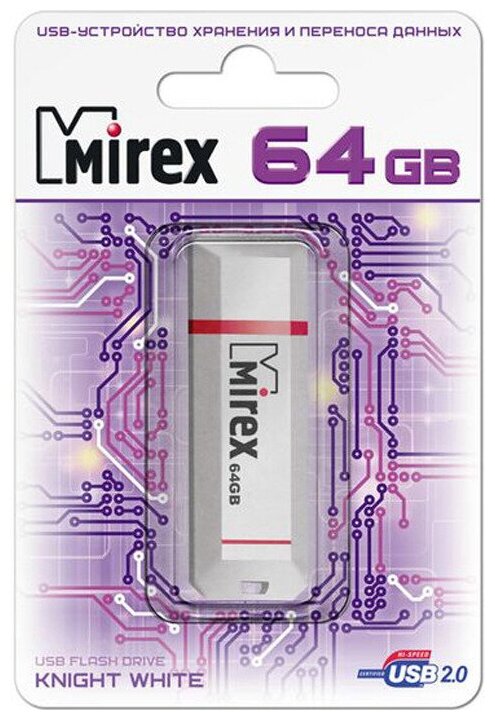 Лучшие цены. 64GB USB 2.0 Mirex KNIGHT белый (ecopack)(13600-FMUKWH64). Память USB Flash 64 ГБ Mirex Knight [13600-FMUKWH64] – это компактный и функциональный накопитель емкостью 64 ГБ, который отлично подойдет для работы с различными файлами – как документами, так и медиа. Данная модель использует в своей основе передовые технологии обработки и хранения данных, что в совокупности с высококачественными компонентами и интерфейсом USB версии 2.0 способствует высокой производительности – вплоть до 480 Мбит/с. Магазины в вашем городе.