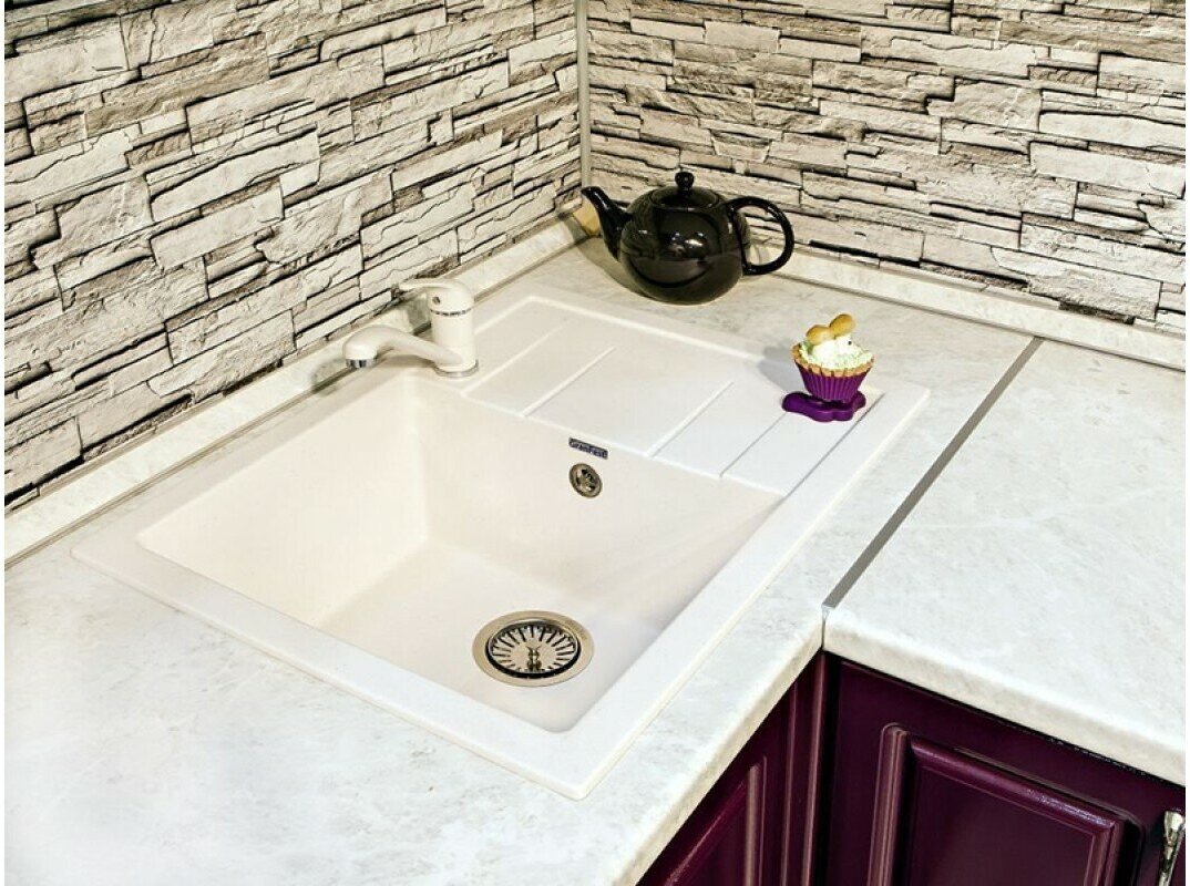 GRANFEST Мойка мрамор QUADRO GF Q 650L чаша с крылом 650*500мм белый