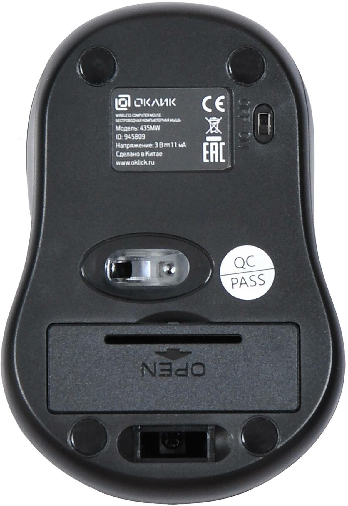 Мышь компьютерная Oklick "435mw", черная, оптическая, 1600 dpi, беспроводная, usb (435MW)