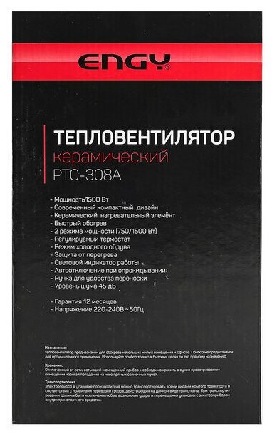 Тепловентилятор Engy Ртс-308a керамический 020298 .