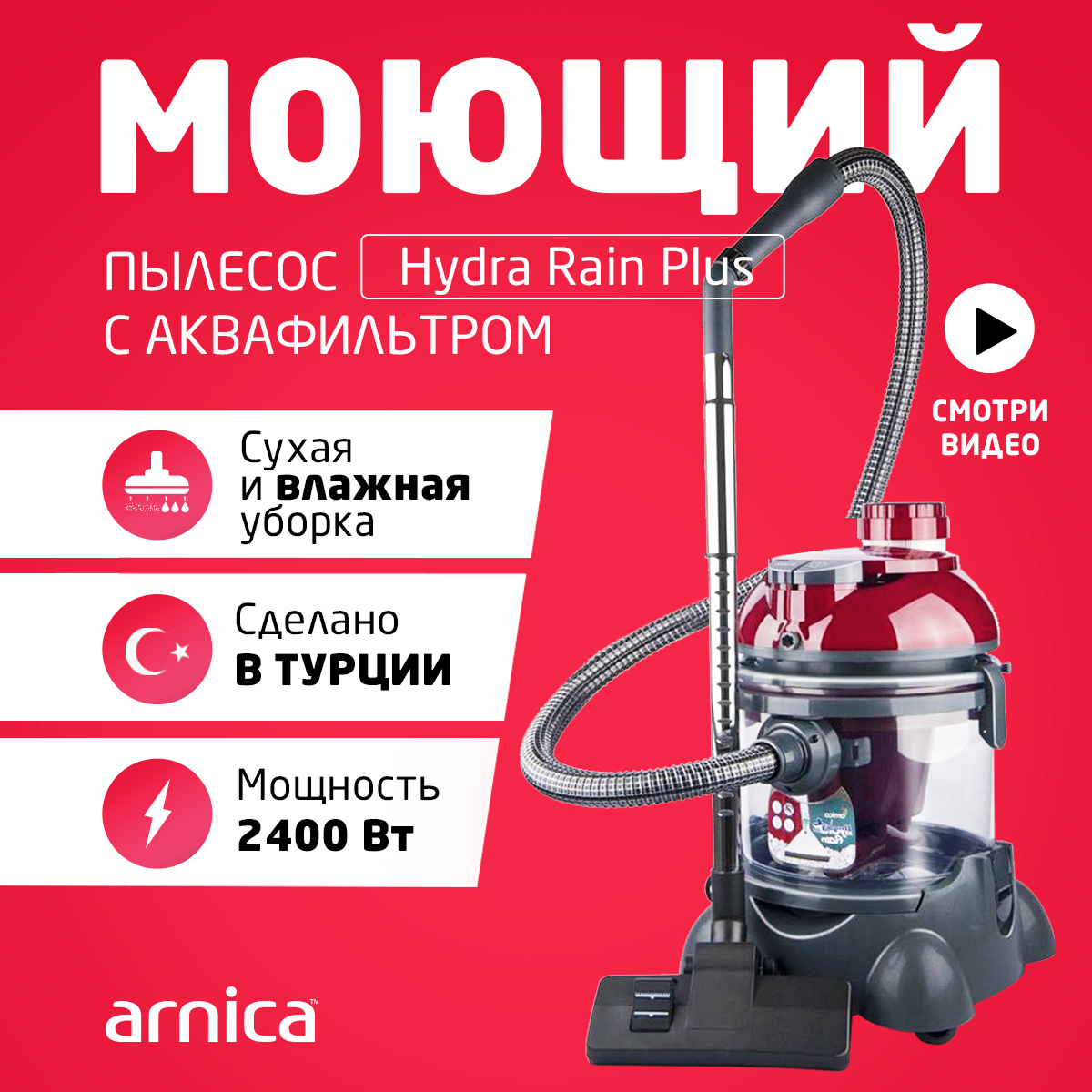 Моющий пылесос ARNICA Hydra Rain Plus вишневый