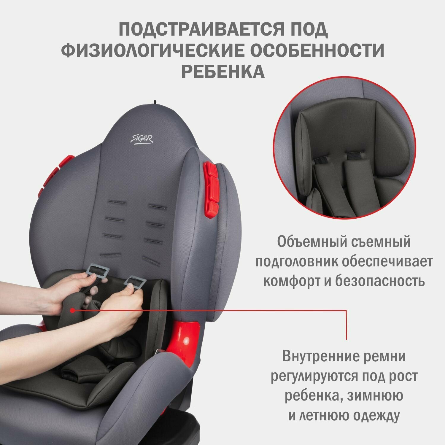 Удерживающее устройство для детей SIGER "Кокон ISOFIX" серый, гр. I/II, 9-25 кг, 1-7 лет