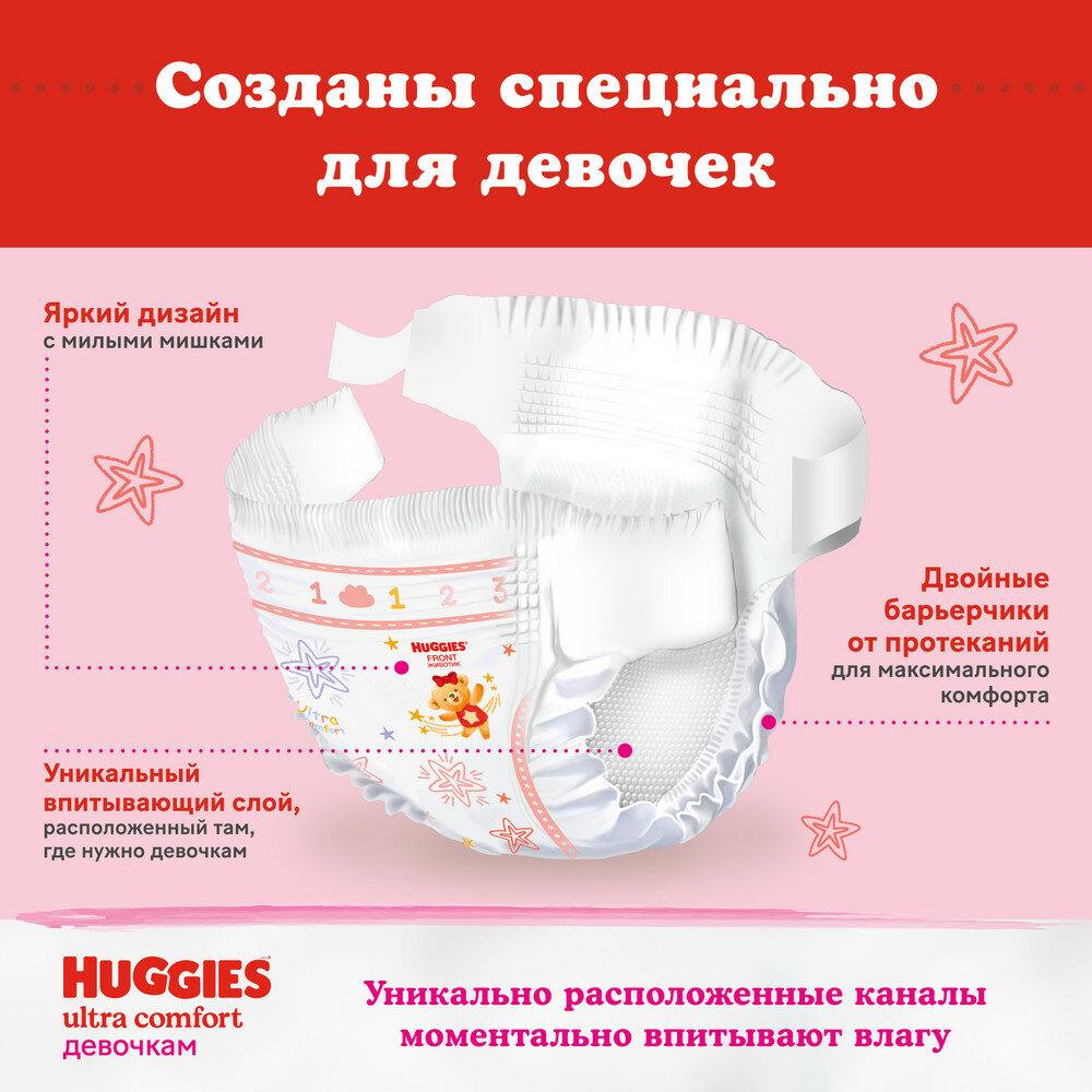 Подгузники Huggies Ultra Comfort 5, 12-22кг, для девочек, 64шт.