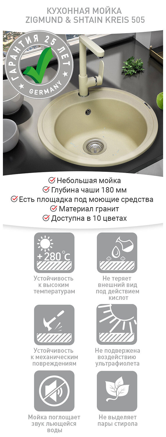 Мойка из гранита Zigmund Shtain KREIS 505 Молодое шампанское 8 855 ₽ Подробнее