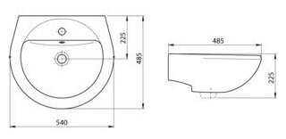 Раковина подвесная SANTERI Соната 023-1648, 54х22.5х48.5 см