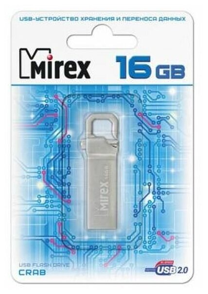 Флешка Mirex CRAB, 16 Гб, USB2.0, чт до 25 Мб/с, зап до 15 Мб/с, цвет серебристый (1шт.)