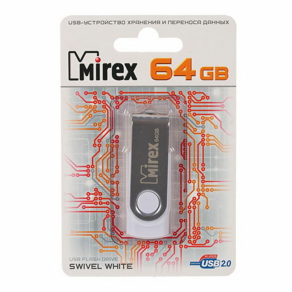 Флешка Mirex SWIVEL 64 ГБ, 1 шт., белый