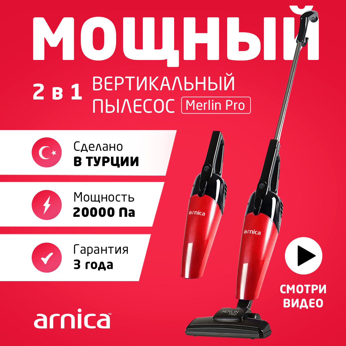 Пылесос Arnica Merlin Pro вертикальный черный/красный .