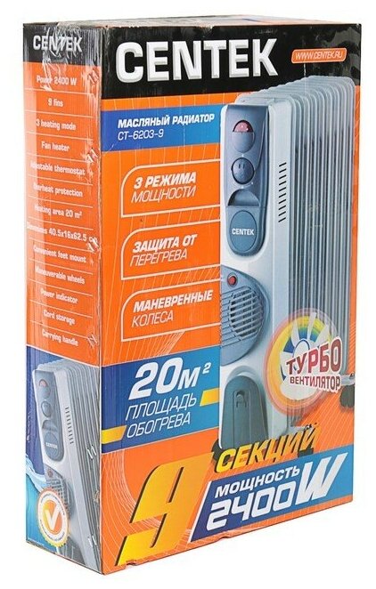 Обогреватель Centek Ct-6203, масляный, 2400 Вт, 9 секций, 20 м2 Centek 2670216 .