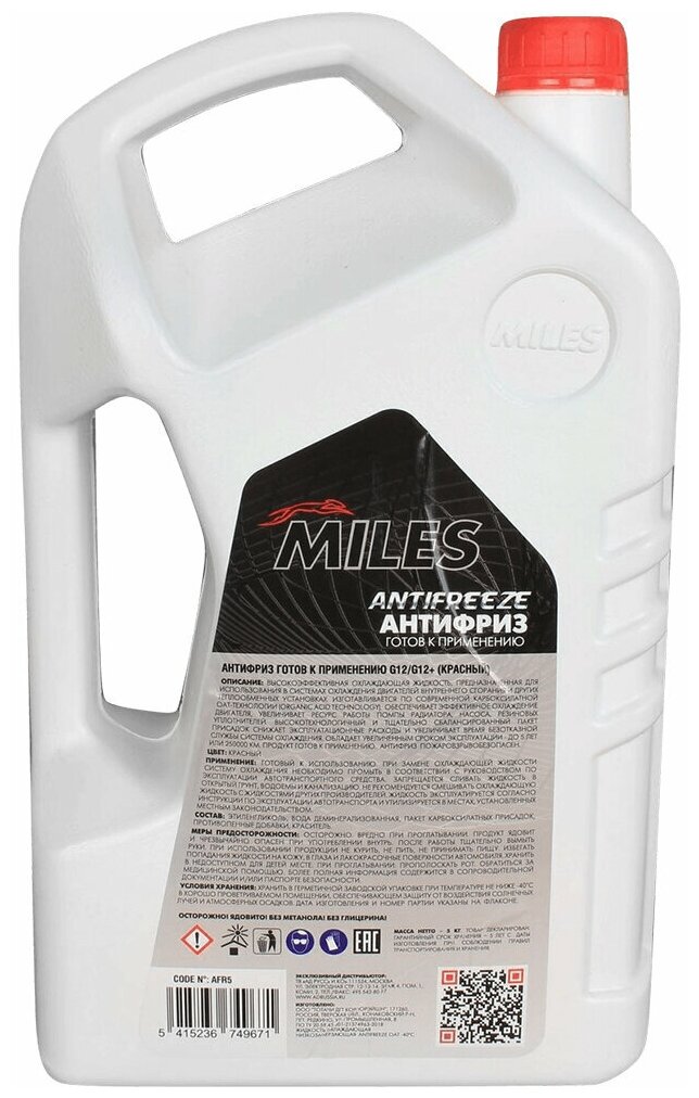 Антифриз g12/g12+ miles готовый 4,4л, miles, afr5
