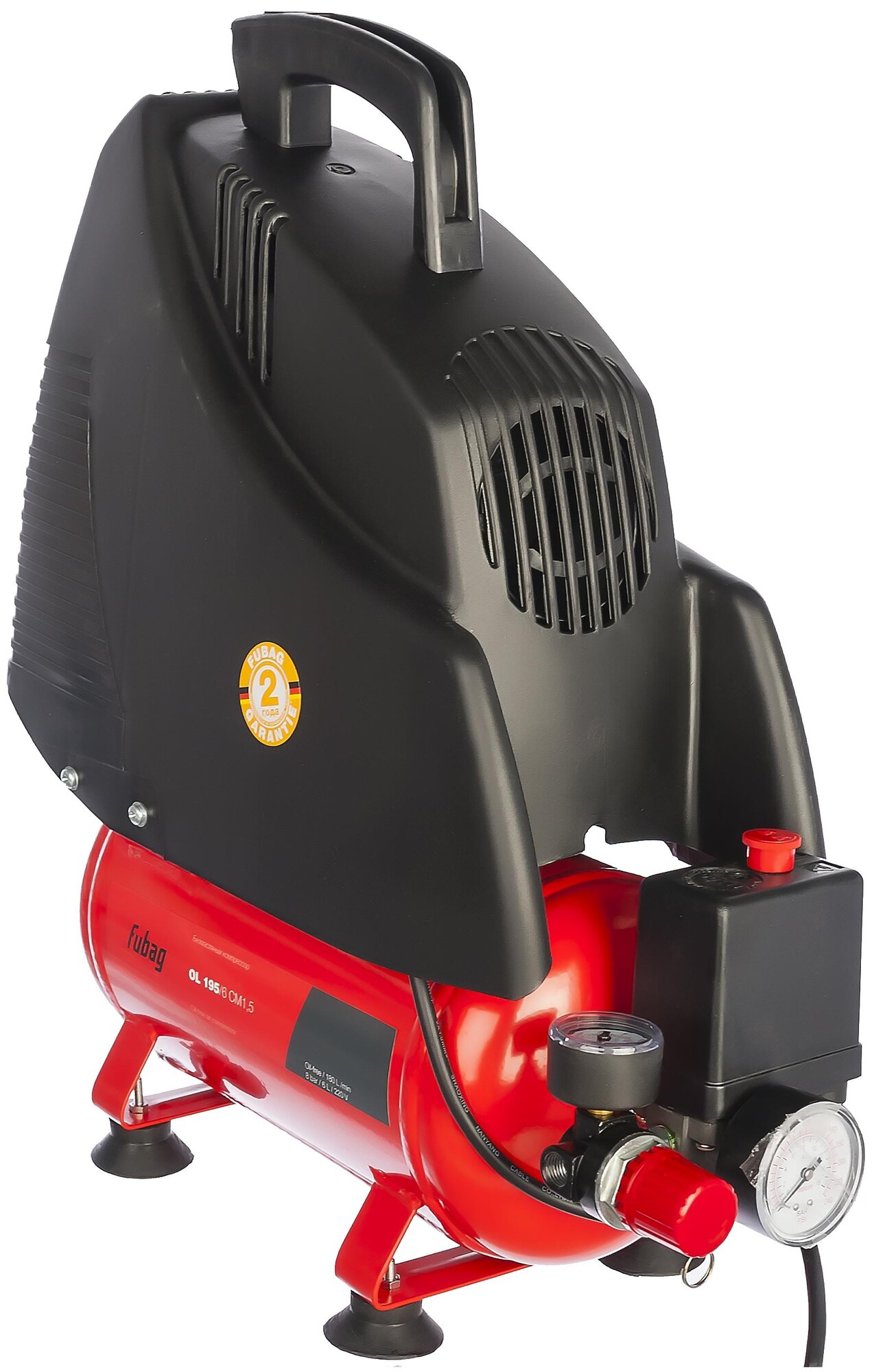 Лучшие цены. Безмасляный коаксиальный компрессор FUBAG OL 195/6 CM1.5 – надежный источник чистого сжатого воздуха для пневмоинструмента. Отсутствие выбросов масла делает аппарат безопасным для окружающей среды и востребованным среди домашних мастеров и ремонтников. • Однофазный электрический двигатель • Регулировка рабочего давления • Защита от перегрева • Встроенный воздушный фильтр • Удобство при транспортировке. Магазины в вашем городе.