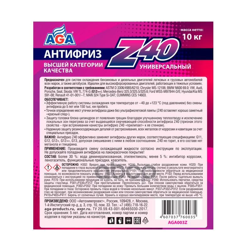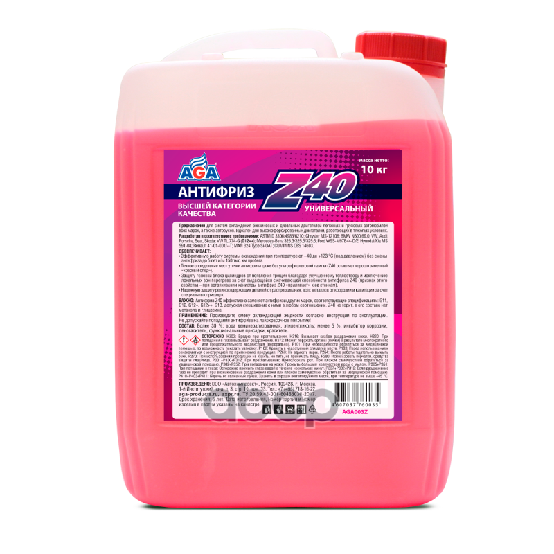 AGA AGA002Z_антифриз 5KG !готовый к применению, красный, -40С 1 568 ₽ Подробнее