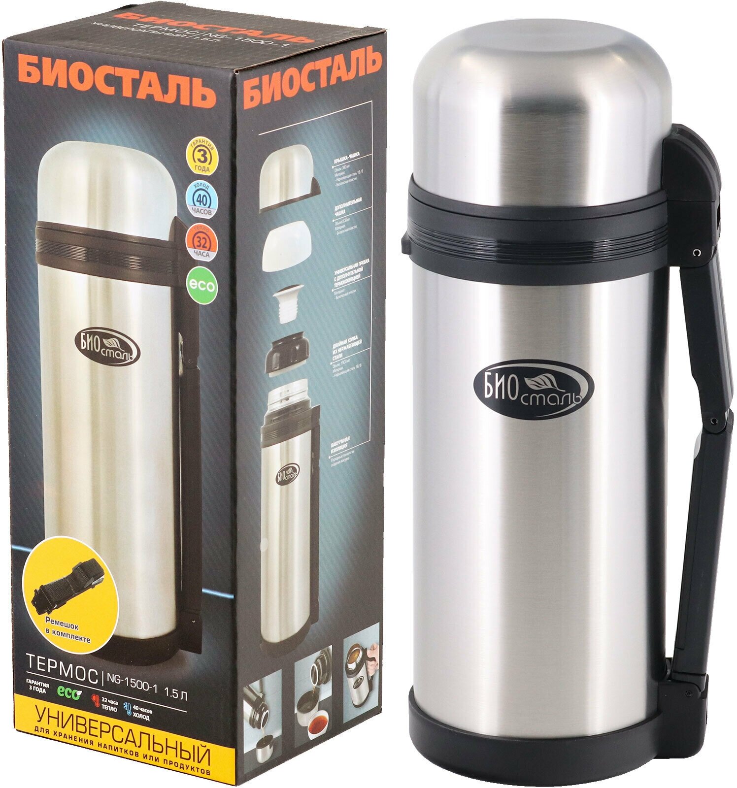 Термос универсальный (для еды и напитков) Biostal (1,5 литра), стальной