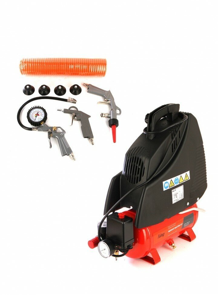 FUBAG SERVICE MASTER KIT Компрессор+набор из 6 предметов [8213790KOA604 (8213790KOA542)] (Ресивер, л 6 Производит., л/мин 180 Давление, бар 8 Мощность, кВт1.1 Напряжение, В 220 Вес, кг 12) 22 688 ₽ Подробнее