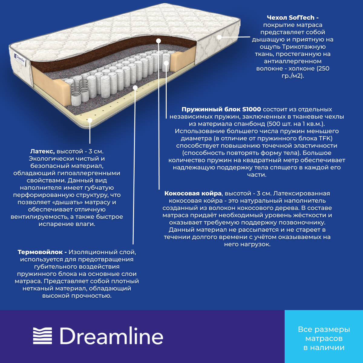 Матрас Dreamline SleepDream S1000 85х200, нестандартный 16 729 ₽ Подробнее