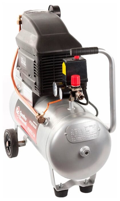 Лучшие цены. Масляный поршневой компрессор QUATTRO ELEMENTI VENTO-24 770-247 может использоваться как в быту для питания пневмоинструмента, так и в строительстве, авторемонтной сфере. Оснащен мощным двигателем 2.5 л. с. В данной серии компрессоров модель обладает максимально возможной производительностью - 170 л/мин. Вентили регулировки позволяют пользователю устанавливать требуемые ему параметры давления. Мощность компрессора - 1850 Вт. Магазины в вашем городе.