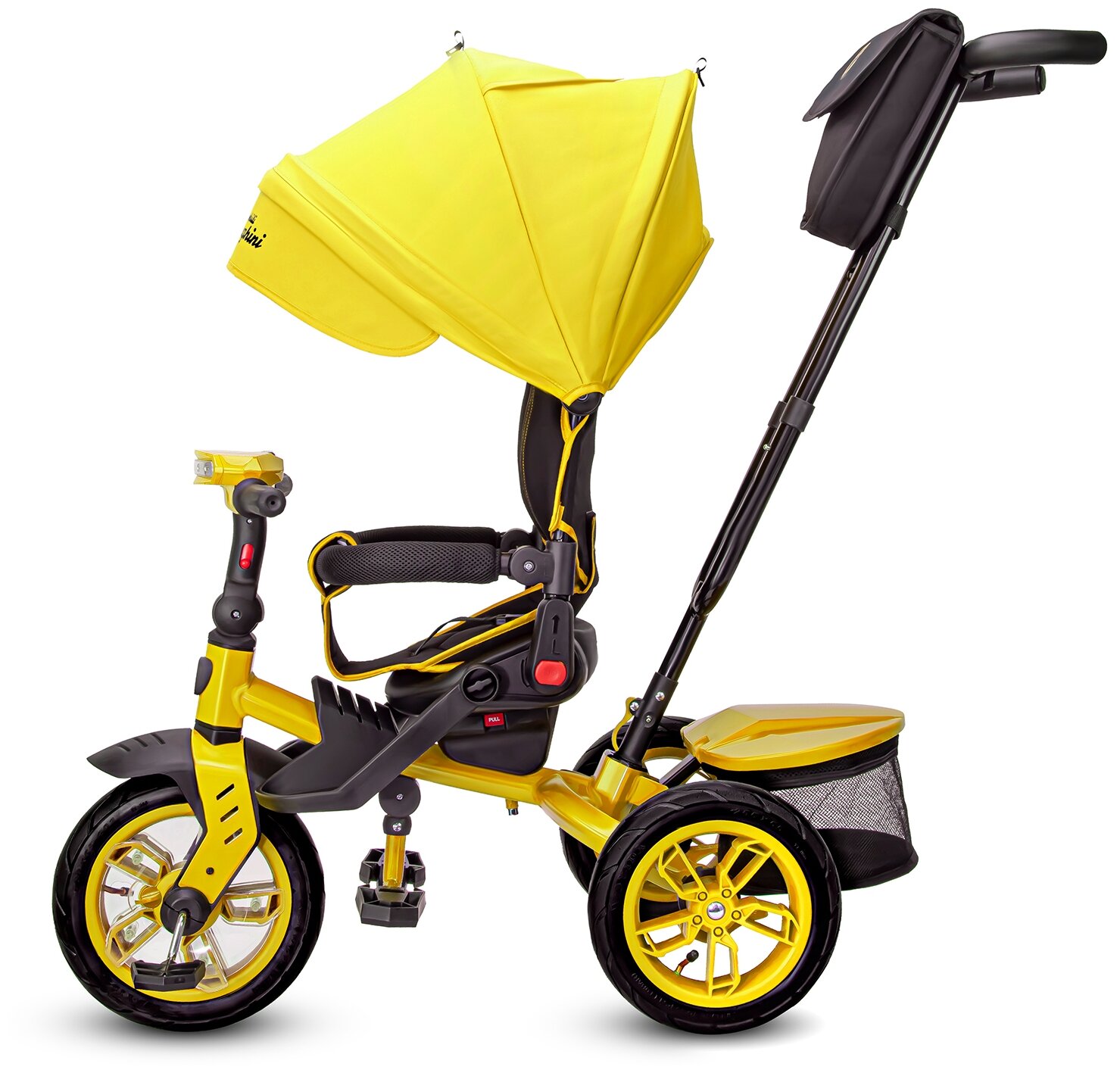 Детский трехколесный велосипед Lamborghini Panorama, складная крыша, багажник, ремень безопасности, 3 угла наклона спинки, надувные колеса 12/10, L5E