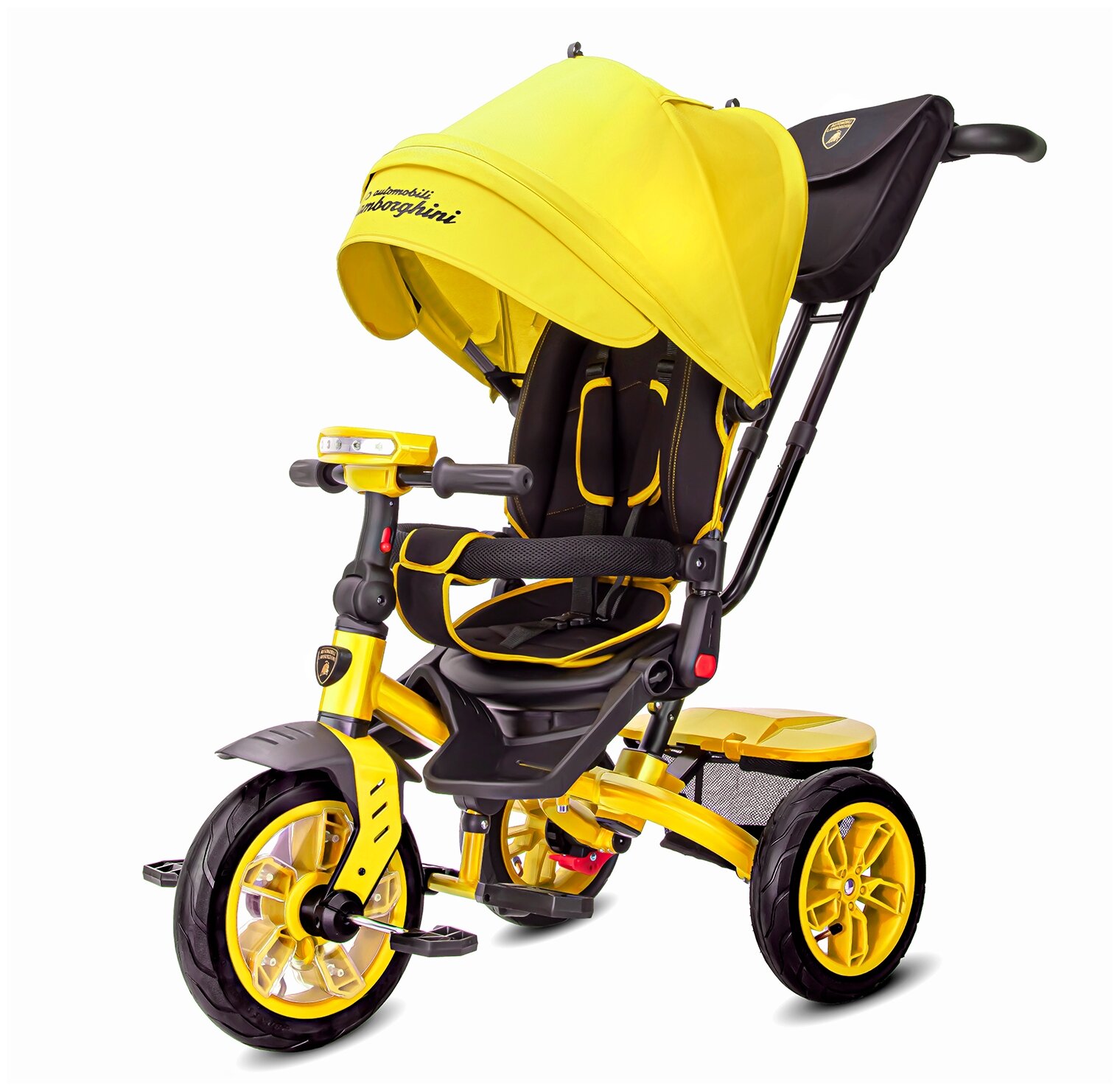 Детский трехколесный велосипед Lamborghini Panorama, складная крыша, багажник, ремень безопасности, 3 угла наклона спинки, надувные колеса 12/10, L5O