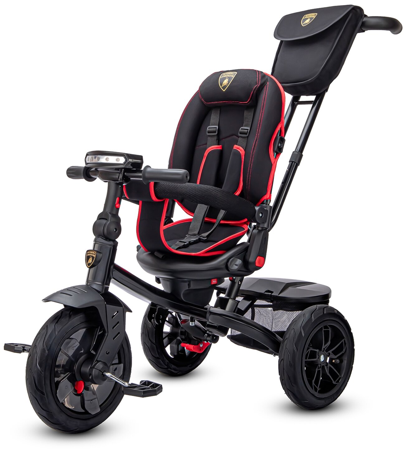Детский трехколесный велосипед Lamborghini Panorama, складная крыша, багажник, ремень безопасности, 3 угла наклона спинки, надувные колеса 12/10, L5O