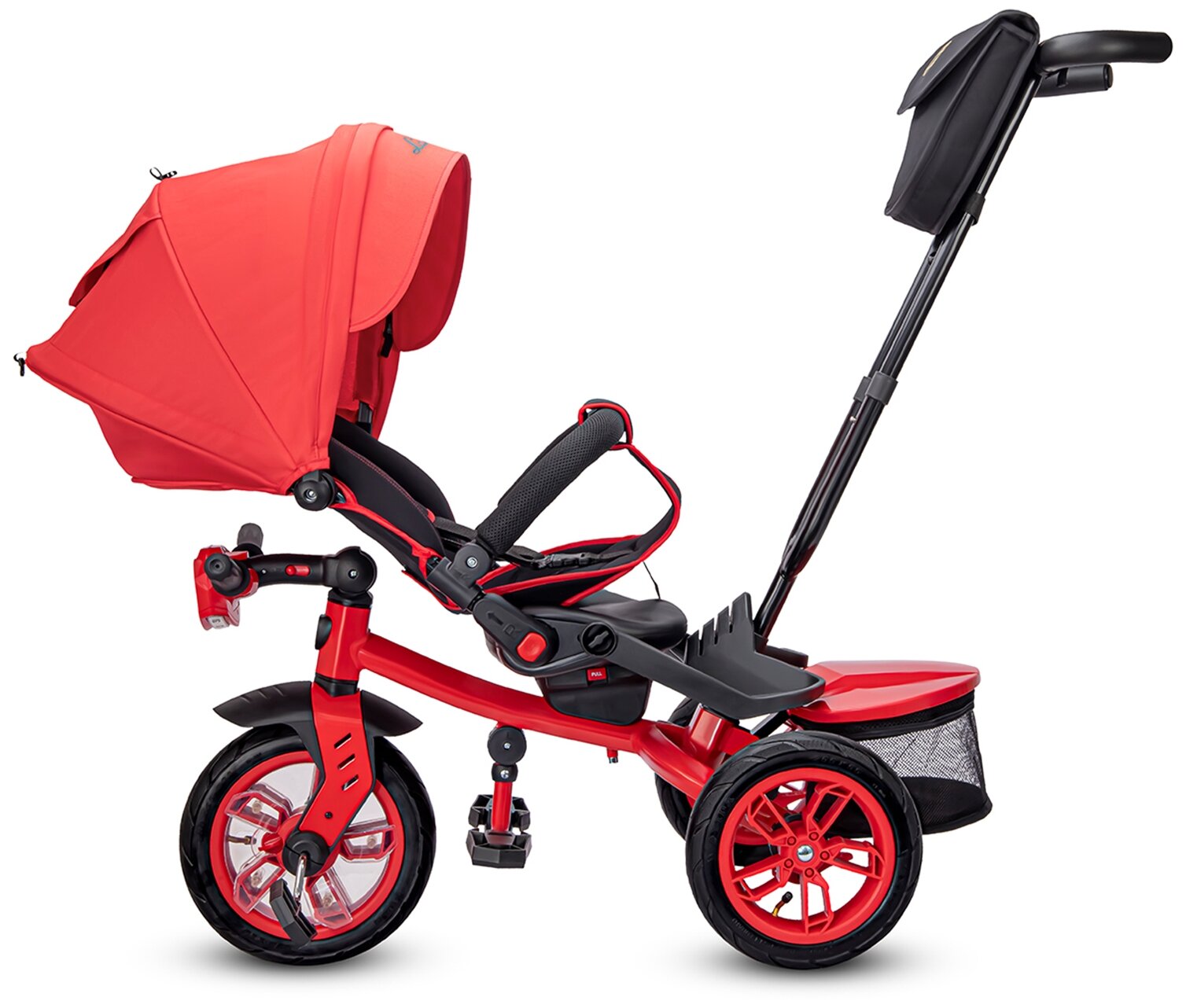 Детский трехколесный велосипед Lamborghini Panorama, складная крыша, багажник, ремень безопасности, 3 угла наклона спинки, надувные колеса 12/10, L5E