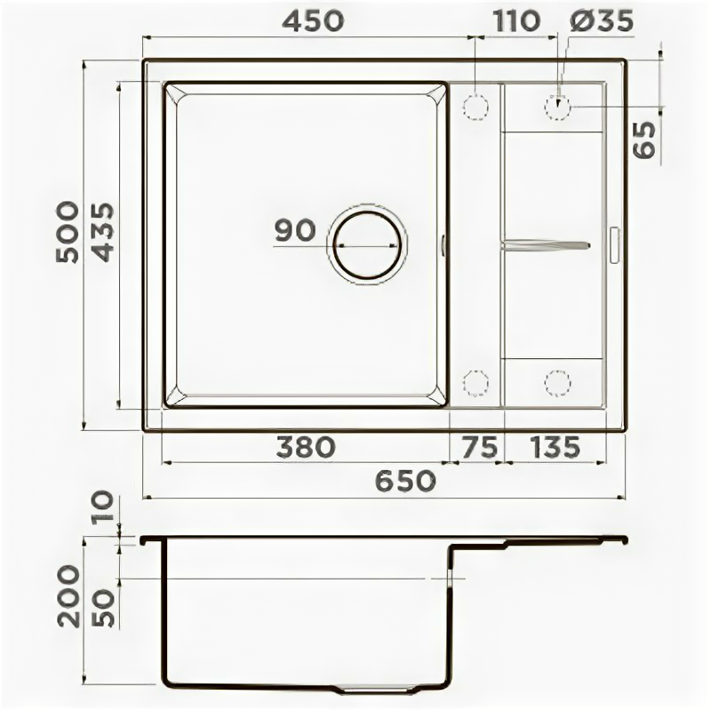 Диаметр отверстия под смеситель | 35 мм |