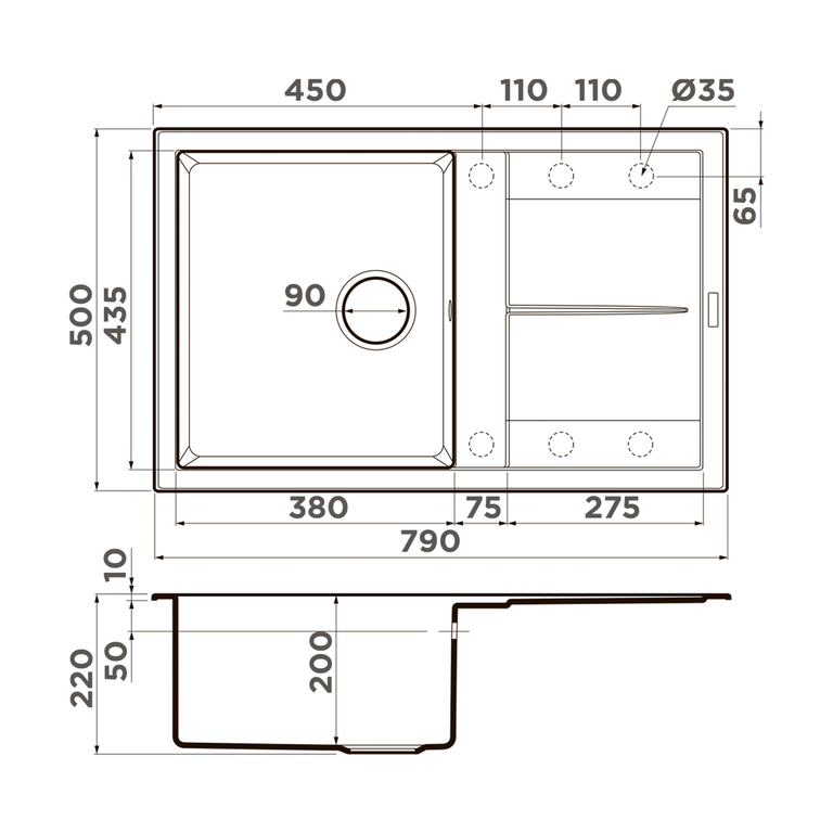 Кухонная мойка OMOIKIRI Sumi 79-DC 79х50см искусственный гранит/темный шоколад