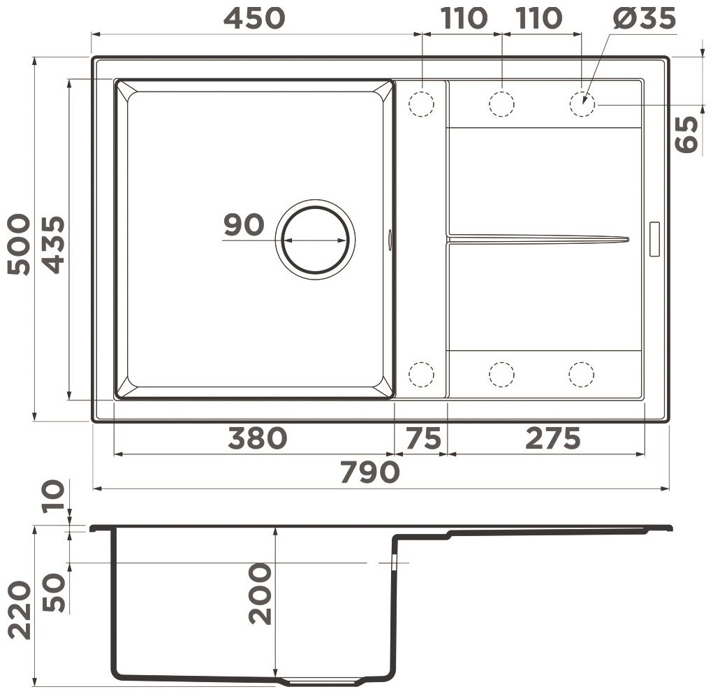Кухонная мойка с крылом OMOIKIRI Sumi 79-BL, искусственный гранит/черный 34 788 ₽ Подробнее
