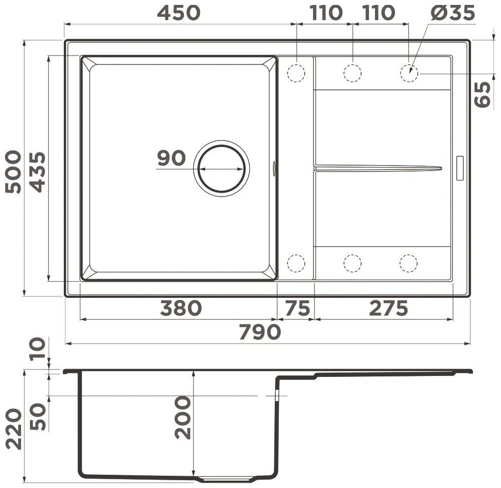 Кухонная мойка OMOIKIRI Sumi 79-BL 79х50см искусственный гранит/черный