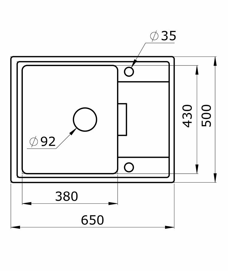 Кухонная мойка GRANULA GR-6503, кварц, 65см х 50см