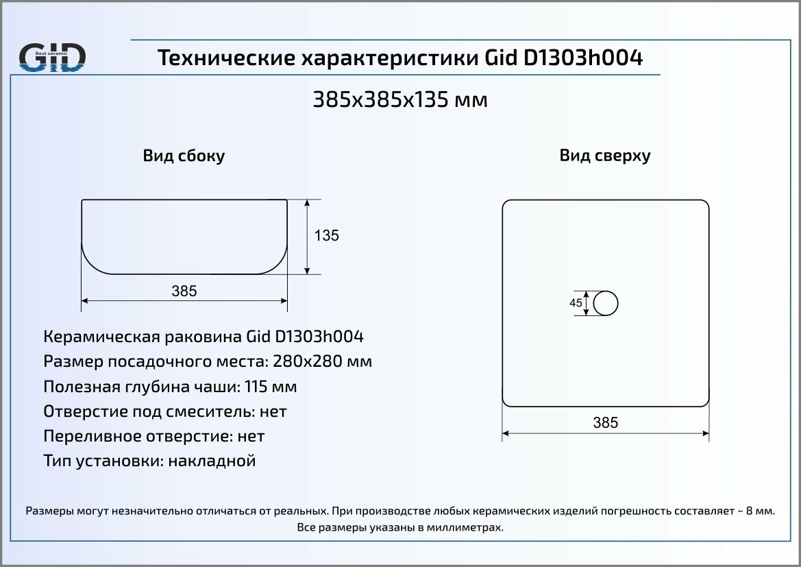 Умывальник Раковина Gid D1303h004