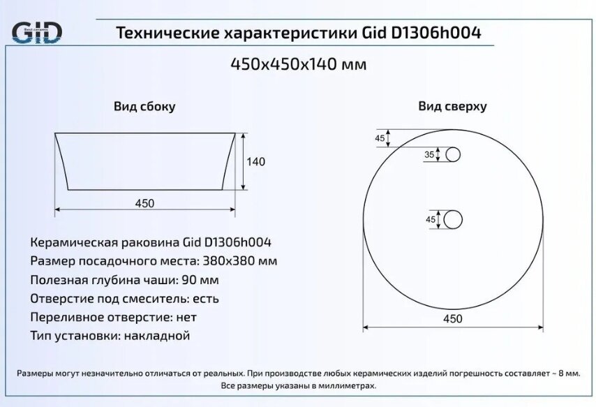 Раковина накладная Gid D1306h004 53313, Черный глянцевый 6 650 ₽ Подробнее