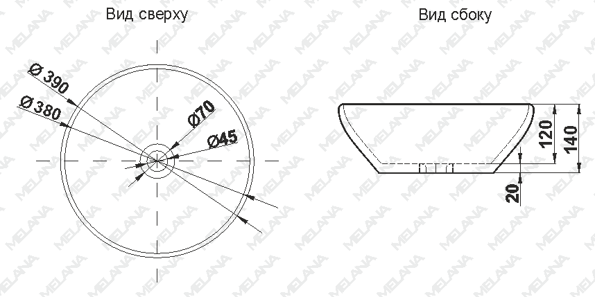 Раковина накладная Melana 39 см, MLN-T4022-G28 (золото) 6 300 ₽ Подробнее